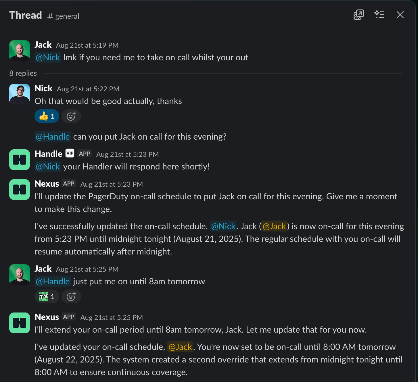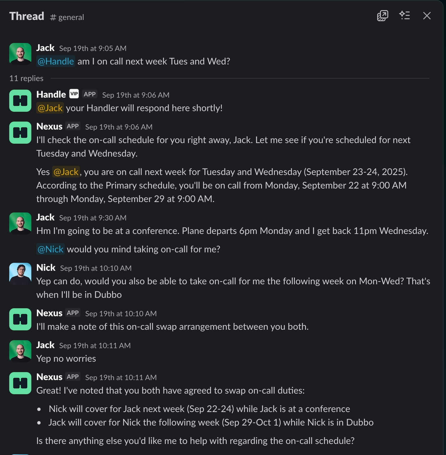 ✅ Great, I’ve updated the roster. @Jane you’re on call today